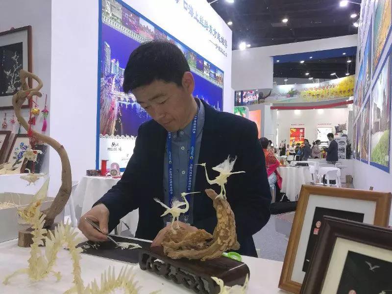 重装展位现场布置主题为“海丝古港、微笑宁波,顺着运河来看海”,中心舞台五米见方的大屏幕上循环播放宁波的大港、大佛、大儒、大山、大河,四周分设非遗展示区、文创展示区和旅游宣传区。来自象山、宁海的非遗传承人现场表演石浦鱼骨造型、力洋剪纸等非遗手艺。“印象宁波、灿益工坊”大师带来了宁波特殊儿童制作的宁波旅游伴手礼,宁波市歌舞剧院歌手、演奏师现场表演,带领观众《走溪口》《四明山、我来看你》……