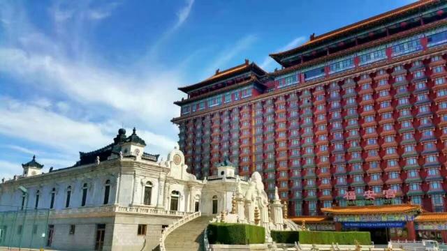 - 千古一帝餐厅----位于正安宫大堂东侧,总建筑面积883平方米。餐厅装饰尽显皇家气派:熠熠发光的四根盘龙金柱,以金黄绸缎软包的墙壁,巨大的圆形水晶灯装饰的天花造顶,以“千古一帝”四字图案为主题的大红地毯配上中式的餐桌、餐椅,特别是大厅正面墙上的巨幅国画“千古一帝”,凸显王者风范。除大厅外还有两个可容纳20人的大包间和四个可容纳10人的小包间,整个餐厅可接待260位客人同时用餐。