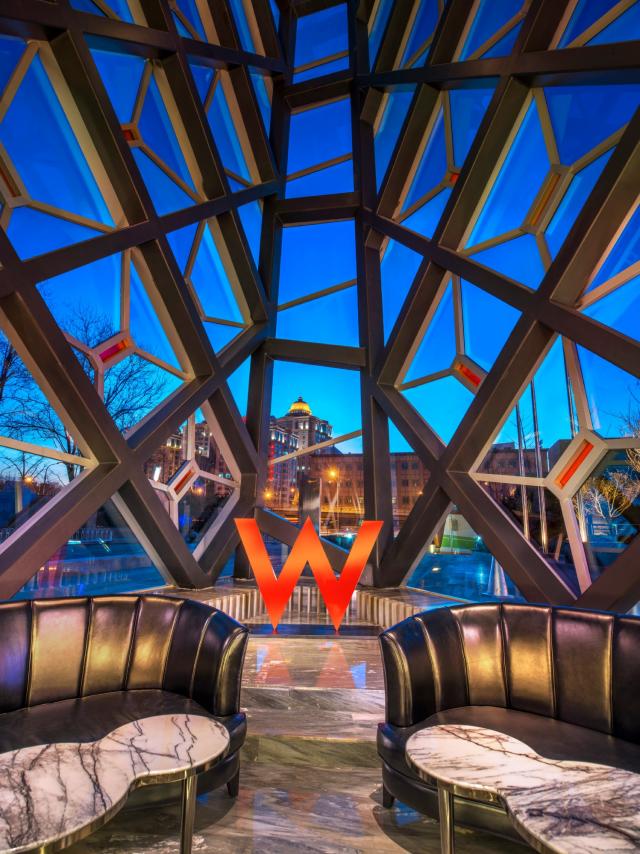 - 位于酒店一层的潮堂W Lounge创造了社交无限的气氛,以时装秀为灵感的LED地幕秀台直通圆形吧台,可从天而降的金色球形DJ台更增添动感气息。吧台后隐藏着极为私密的的专属空间,灵感来自于水立方的立方体空间。W Lounge经常举办W独家盛事轰趴,让宾客和本地潮人体验最新最流行的资讯,包括最前沿的设计、时尚和音乐,引领帝都潮流时尚。