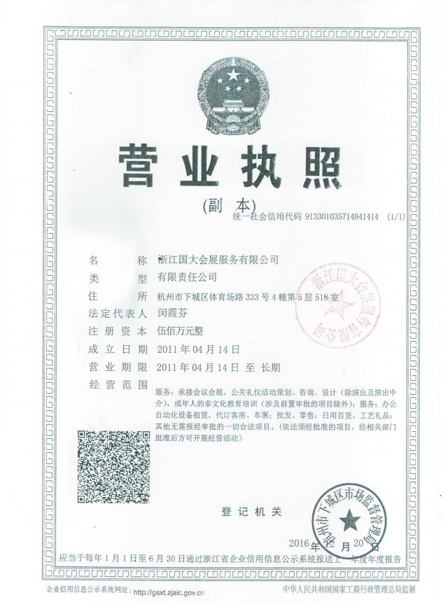 浙江国大会展服务有限公司是浙江省商业集团下属国有企业之一,隶属于浙江国大集团雷迪森旅业。是列入浙江省政府正式采购供应商名录的企业。是浙江省会展行业协会副会长单位。