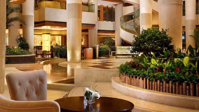 宁波东港喜来登酒店座落于宁波商业核心区,紧邻城市的商务、文化、购物、休闲及会展中心,交通十分便利。酒店坐拥3000平米的宽绰大堂和美仑美奂的建筑空间,配置劳斯莱斯幻影车队,品质一流,是目前国内装修最为豪华、设施最为先进的酒店之一。