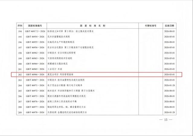 近日,由全国会展业标准化技术委员会(TC348)归口、国家标准委主管的《展览会项目 风险管理指南》国家标准批准发布。该标准历经近三年筹备与编制,凝聚了励展华博展览(深圳)有限公司、深圳市卡司通展览股份有限公司、灵通展览系统股份有限公司、中国会展经济研究会和深圳市会议展览业协会等17家行业核心单位的实践经验与专业智慧,标志着我国会展业风险管理体系走向成熟。