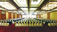 位于金陵饭店楼二层的1000平方米钟山厅,典雅高贵,层高4.3米,正方形。可根据不同会议规模一分为四,承接各类商务活动、庆典及中西式婚典。整个厅可以根据客户需要进行分隔,其隔断是美国进口的“赫福高”牌隔断;灯光方面:主灯为意大利进口云石灯,它的图案是仿中国传统的迷宫布局,与紫红色的“回纹”地毯相呼应;7种模式可调控灯光可以根据会议的议程随时进行调节;JBL顶棚音响,使得声音更均衡。