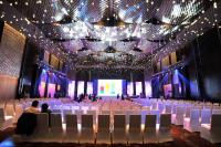 可根据不同会议规模一分为三,可承接各类大型商务会议,时尚派对及高端婚典等。昆仑厅顶部装饰有波浪铝板,并贴银箔装饰,如龙鳞片一般闪闪发光,高低不一波浪形的整体造型,抬头望去如波光粼粼的秦淮河。灯笼造型的灯光有色调相近的地毯与之呼应,如水面倒影般令人神往。昆仑厅灯光由艺术光源,主光源及耗资百万的150个遥控灯组成,多种模式可调整智能灯光系统可提供9种模式以上的灯光模式,甚至可对每桌灯光进行调整,先进的视听和投影、音响设备,可满足各类活动需要。