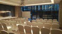 会议室位于酒店一楼大门右手边,面积220平米,长15米,宽13.5米,高5米,可容纳200人会议和10桌婚宴、宝宝宴等宴会活动,设施设备配套齐全