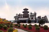 其主体建筑综合采用了侗家鼓楼、风雨桥、铜鼓和箫笛四大元素进行设计。环廊中间分别布置敞轩鼓楼、六边鼓楼、八边鼓楼、六变八边鼓楼及入口抽象鼓楼,大小24个鼓楼共同演绎五凤文化,共同构成全国最大的单体鼓楼群。 鼓楼主体架构采用钢筋混凝土和上等杉木建造,并以大理石民族图案浮雕妆点。两侧建有塔楼形成门阀,隐喻古代匠人营国形成城墙、门楼、阙楼之说。门楼中以贵州三宝之一的“玉屏箫笛”为构架,其上以凤尾翼和芦笙装饰,力求通过建筑语言将贵州多彩民俗文化之美呈现给每一位观众,同时展现贵州民族的自信和对本民族文化的认同