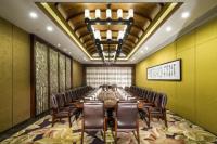 - 中餐厅(9个包厢、1个零点餐厅)位于主楼2楼,装饰豪华的中餐厅,面积为600平方米,可容纳200余名客人同时用餐(包括团队),还设有不同规格的贵宾豪华包厢9个,其中最大最豪华的包厢可容纳20多人用餐,可为客人提供临安当地菜、杭帮菜和粤菜,是您宴请和聚会的首选。