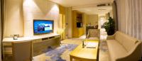 酒店共有客房240间,床位数334个,其中单人间121间,配备1.8*2m床型,面积30㎡以上;双人间94间,配备1.3*2床型,面积33至35㎡之间;豪华单间16间,配备2*2床型,面积约50㎡;普通套房8套,配备2*2床型,设立会客区与休息区,客卫与主卫分开,配豪华浴缸;豪华套房1套,配备2*2m主人床型一张及1.8*2m秘书房床型一张,拥有客厅、卧室、会议室及秘书房,面积约130㎡。