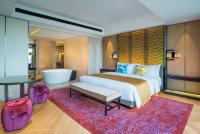 酒店以“耀动帝都”为设计主题,是一座璀璨夺目的潮流地标,灵感来自于“天圆地方”这一古老的东方哲学,打造令人惊叹的天际线美景。酒店整体装饰华美典雅,一步一景,彰显尊荣;拥有多款时尚优雅、空间布局合理的客房,拥有可调节房间色彩及气氛的数码遥控,尽显摩登型格;房内配以招牌W睡床、48寸LED高清电视、JBL家庭影院蓝牙音响等先进设施,打造品质生活空间。