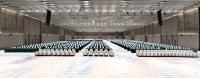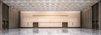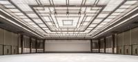 新闻发布厅位于A区的一层,可用于新闻发布活动的举办,面积为 1307m2。会议模式可容纳 738 人。