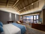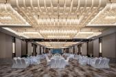 酒店临水而建,错落有致,以现代中式韵味为整体建筑格调,白墙黛瓦与周边生态环境自然融合。
