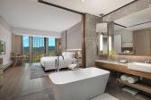 酒店共拥有342间宽敞雅致的客房,房间可欣赏山景、园景、湖景等景 观。房间配备高速网络,夏普品牌电视机(55寸)、美国席梦思床垫及 康乃馨床品、德国贝朗卫浴设施、西班牙悦碧施洗漱用品;部分套房配 有超大浴缸、智能马桶,戴森吹风机,部分房间配有阳台,可供您在此 观湖喝茶,让您在繁忙的都市生活中得以释压。
