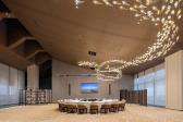 望岚厅400㎡,挑高最高为10米,最多可容纳120人,三面环景,适合中小型宴会及发布会等。会议厅设计色调以暖木色为主,浅色的天花搭配仿铜不锈钢金属嵌条,木纹的墙面与浅色的饰面交织,是现代与传统的结合。国际会议中心知行厅5500㎡、万金厅3700㎡,其他VIP会议室300-600㎡不等。