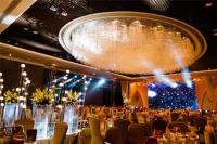 独立楼层,方正无柱,两盏奢华水晶吊灯,独立化妆间及休息室,专属宴会厨房