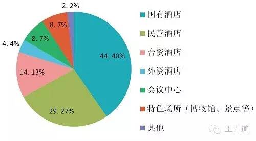 1 会奖场所以酒店为主,特色场所及会议中心占比较少。