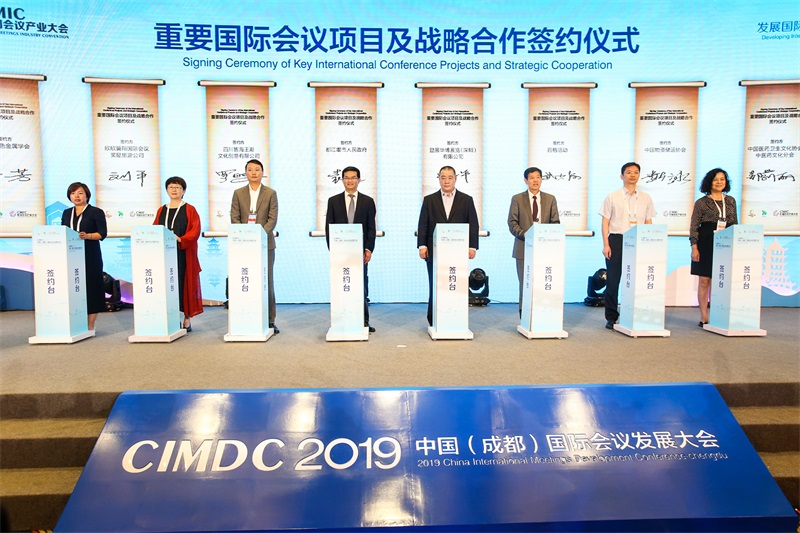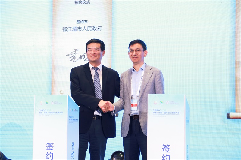 在9月5日的开幕会议期间,中国国际航空公司、瑞雁旅科文化(上海)有限公司、中创科技发展战略研究中心、世界医疗健康旅游联合会、中国市场学会批发市场委员会、中创科技发展战略研究中心等企业机构、行业组织和商协会与成都签订战略合作协议;同时,都江堰与励展华博展览(深圳)有限公司、四川智海王潮文化创意有限公司、欣欣翼翔国际会议奖励旅游公司、百格活动、中国有色金属学会、中国物资储运协会、中国医药卫生文化协会中医药文化分会等签订了战略合作协议。除此之外,中国会议产业大会组委会与都江堰签订重要会议项目合作协议,共同决定将中国国际会议发展大会永久落户在都江堰,这也将进一步提升成都以及都江堰的国际会议发展水平。