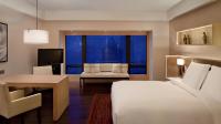 俯瞰京城壮丽景致的客房拥有开放式的浴室备有特大淋浴雨洒和水疗式浸浴浴缸,热能地板与豪华浴室备品。于59层的健身中心还拥有高空室内无边际恒温泳池。