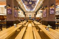 整个餐厅大堂,并配有舞台,悬挂式超大投影以及分散的小投影,音响,灯光。最多可容纳550人,支持各类的公司年会,商务宴请,酒会,冷餐会等形式的活动。
