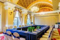 会场环境优雅,设备齐全,装有室内LED屏、调音台、4台音响、手持无线话筒、立式讲台和中央空调等。可完成对各种图文信息(包括各种软体的使用)的播放功能,实现多功能厅的现场扩音、播音,配合大屏幕投影系统,提供优良的视听效果。 会议室可根据人数的多少和会议的需要来布置会场,可承接中小型商务会议及室内演出,提供化妆间、更衣间和贵宾休息室。
