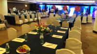 多功能厅位于饭店主楼二楼,是一个兼具开餐、会议的场地,扇形设计,固定舞台、可承接各类家庭宴会、公司会议等。