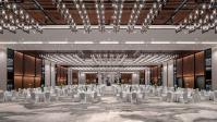 建筑设计以独特地形营造中国院墙围合的皇城风格,两侧主楼由一道全 玻璃帷幕打造的玻璃光廊为核心连贯,渐进而上的升迭设计布以涵碧楼 独有水景文化与竹林元素,引导贵宾探索秘境,是都市之中繁华与宁静 相依的难得处所。