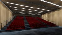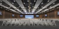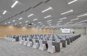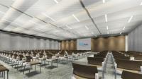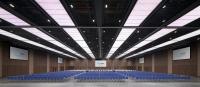 位于二层的报告厅,面积为682平方米; 配备高清激光投影仪、电动升降吊点、可折叠自动伸缩阶梯式座椅; 当自动伸缩座椅收起后,可作为中型会议室使用。