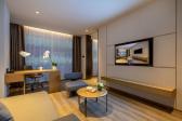 浙江云山蝶来酒店按四星酒店标准装修、运行,精心打造的102 套风格特异的客房,每间客房的面积均在36平方米以上,宾客可享受到一系列智能化的尊贵服务,如电动窗帘、雾化玻璃、乳胶床垫、高星标准床品及法国沐浴洗护用品,部分房型拥有单(双)人浴缸,全覆盖高速wifi等设施,同时提供贴心且性价比高的管家式服务,8款经典房型满足客户多元化需求。