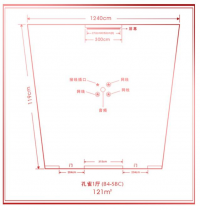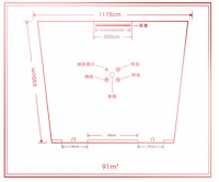 参数2:室内 矩形 无柱 可拆分 长宽 13.2m x 11.8m 高 --m 灯下高 --m 搭建限高 --m