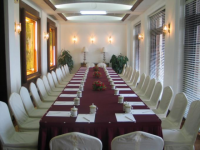 孔雀1厅 会场总面积:121平方米 长度:11米 宽度:11米 高度:2.9米 容量:可容纳剧院式80人、课桌式60人、宴会圆桌式60人、U形式30人、中空式22人 孔雀2、3厅 会场总面积:85平方米 长度:8米 宽度:11米 高度:2.8米 容量:可容纳剧院式40人、课桌式30人、宴会圆桌式40人、U形式24人、中空式20人 孔雀4厅 会场总面积:91平方米 长度:10米 宽度:9米 高度:3.1米 容量:可容纳董事会型20人会议