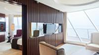 充满现代气息的客房,通透宽敞,航海地图等邮轮元素精心点缀在各细微之处;不论是从浴室或是客房看去,透过大面积落地玻璃窗,湖光,园色,映入眼帘。